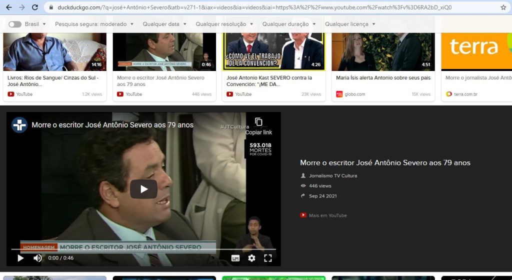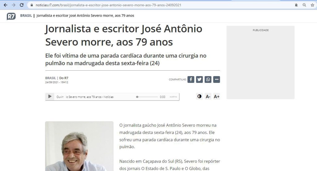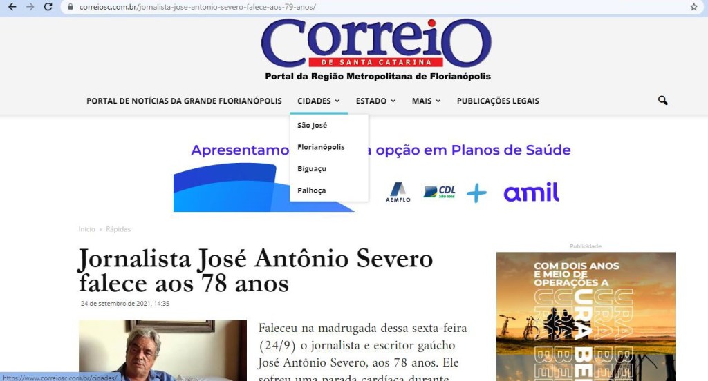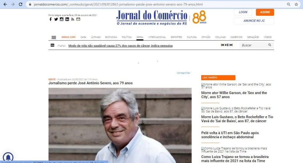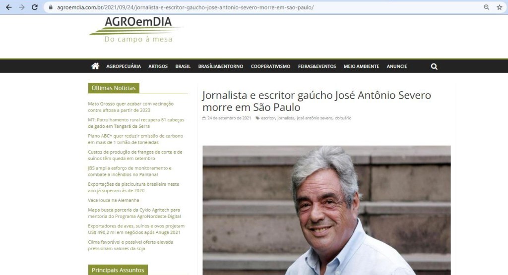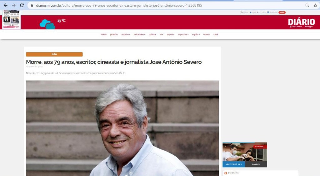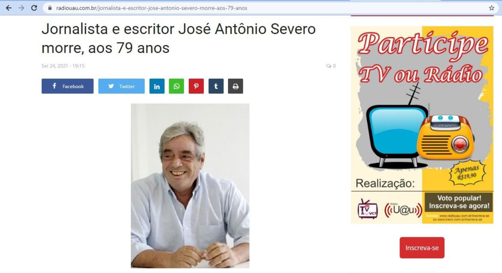 Homenagens Troféus, diplomas, e condecorações Homenagens Vídeo que mostra a vida de José Antonio Severo desde a infância, familiares, amigos e momentos marcantes da vida profissional e pessoal. Uma homenagem da esposa, Celia.