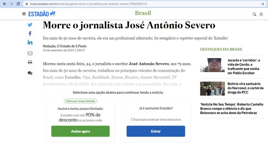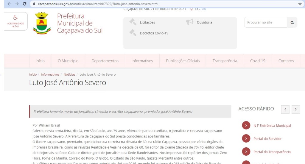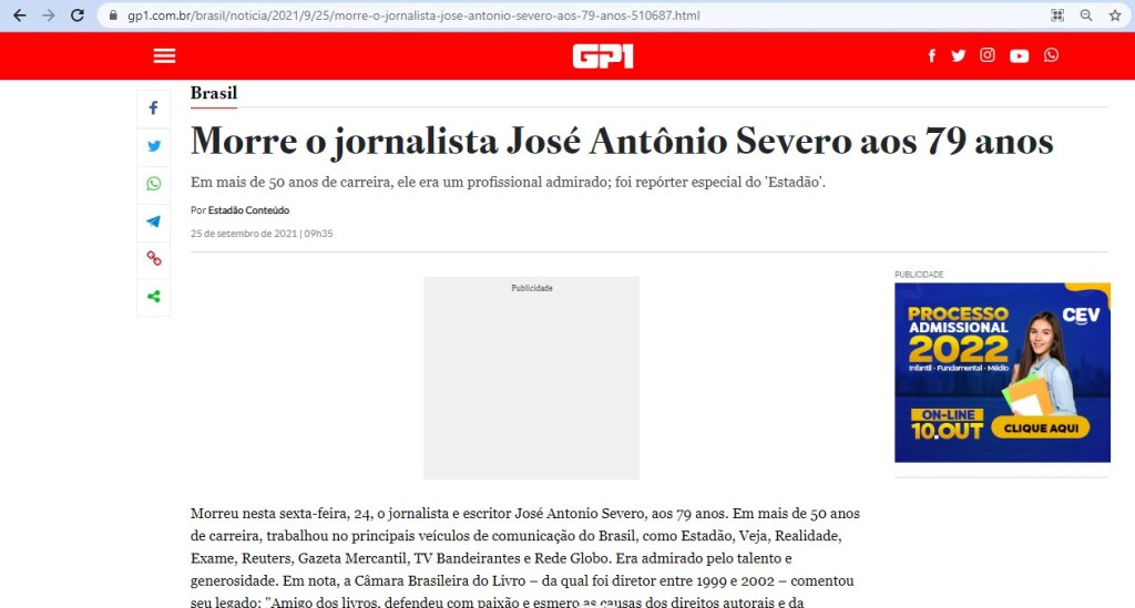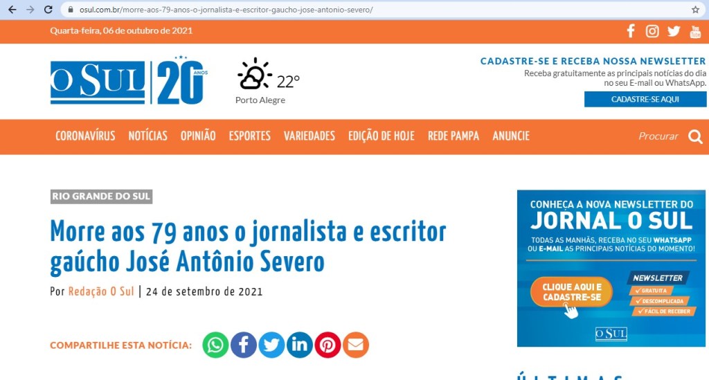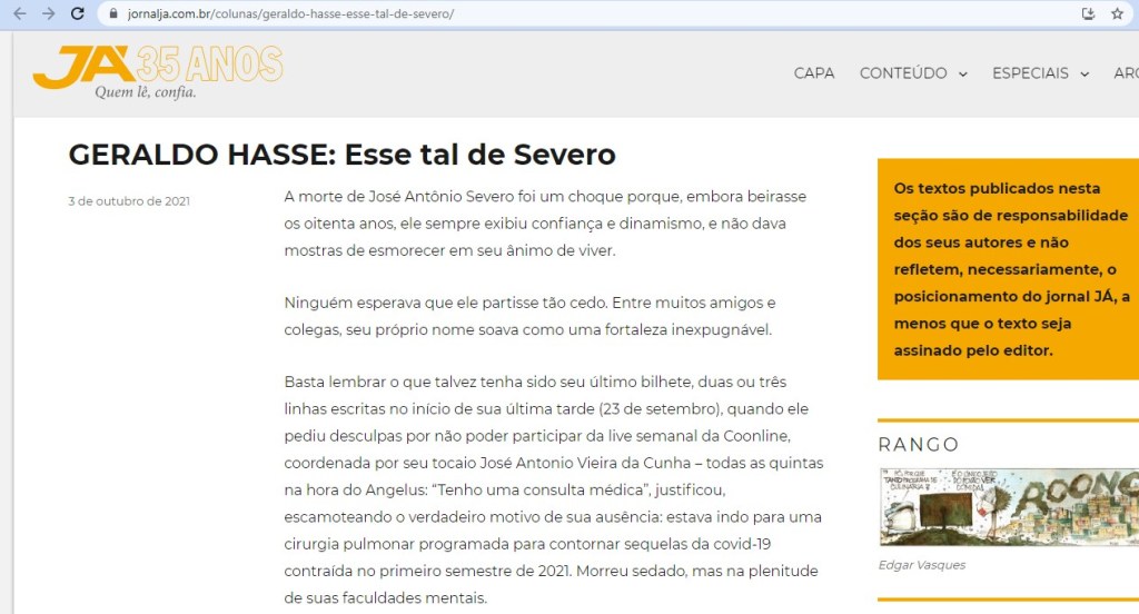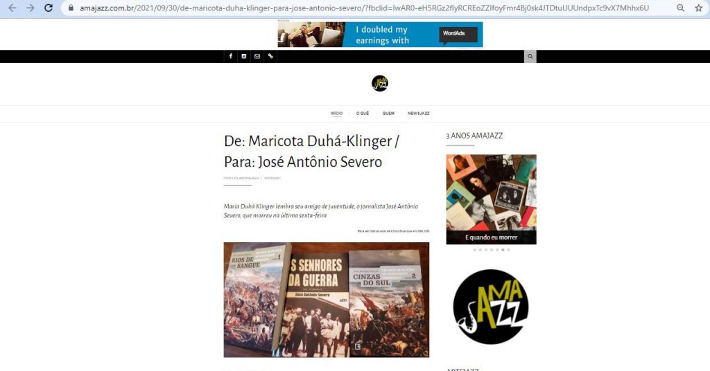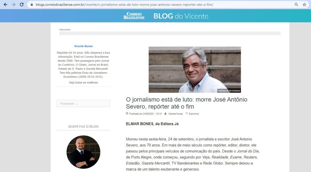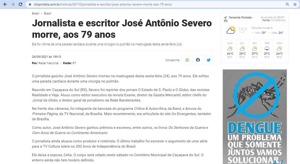 Homenagens Troféus, diplomas, e condecorações Homenagens Vídeo que mostra a vida de José Antonio Severo desde a infância, familiares, amigos e momentos marcantes da vida profissional e pessoal. Uma homenagem da esposa, Celia.